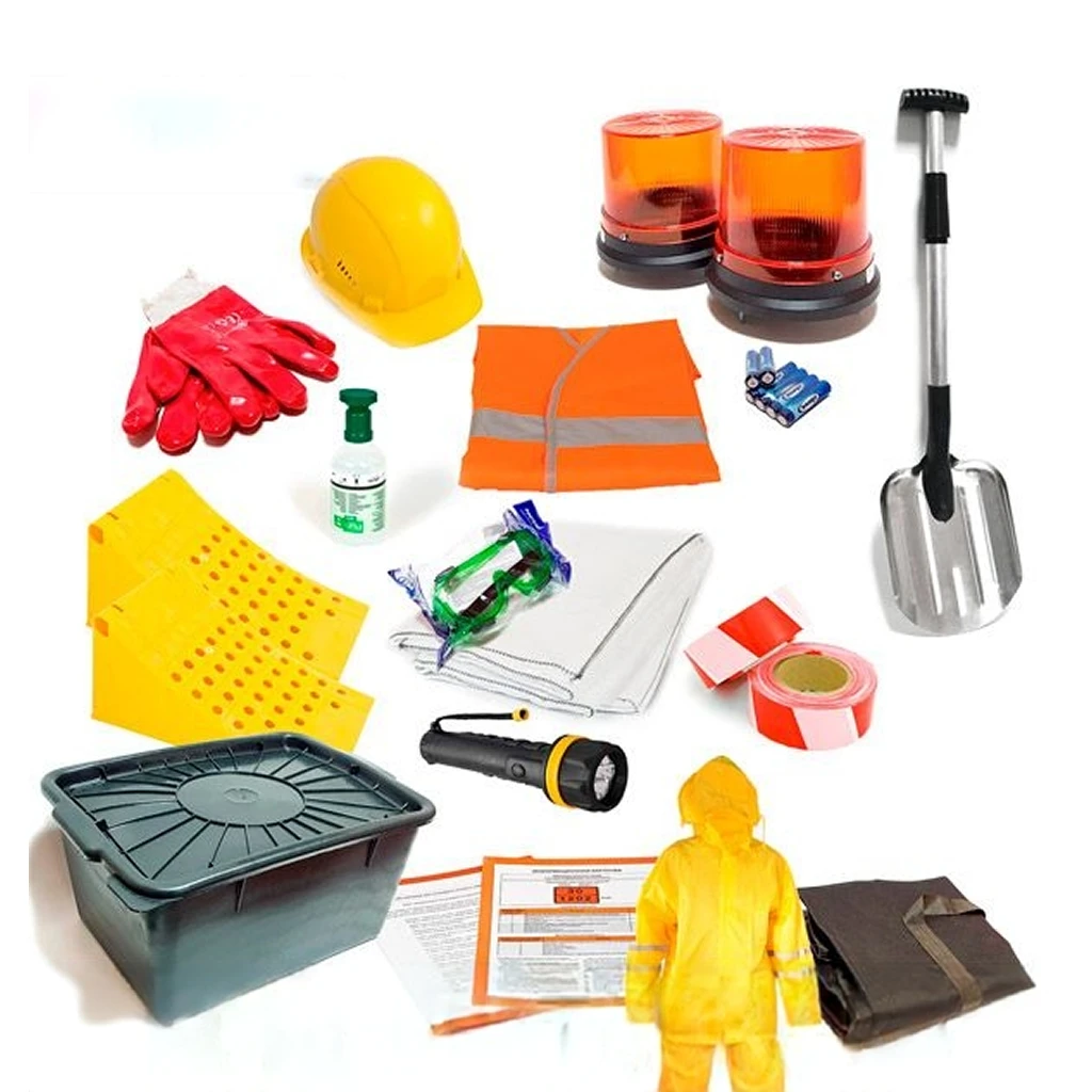 Комплект ADR для 3, 4.1, 4.3, 8, 9 класса опасности: защитные средства, дренажная ловушка, искробезопасные инструменты. Соответствует ДОПОГ и ТР ТС 018/201.